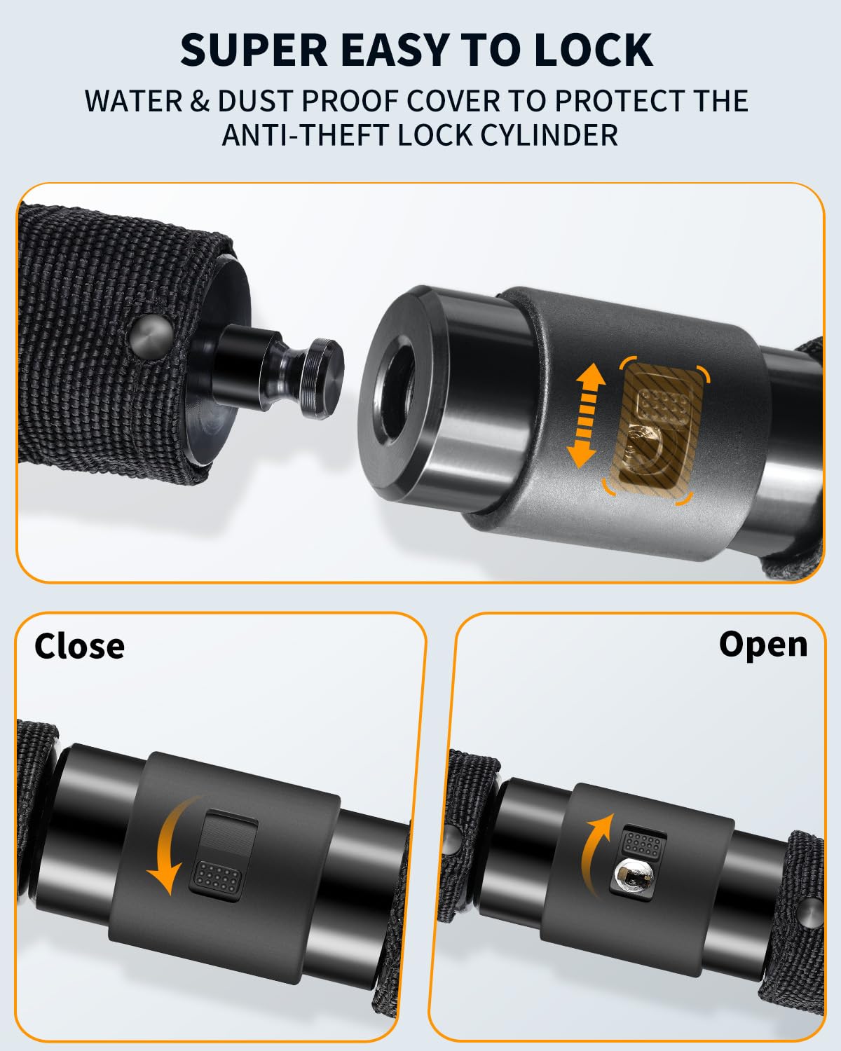 Enjoy 360° rotation for easy locking from any angle. The built-in dust cover keeps the keyhole clean and rust-free for smooth, long-lasting performance. (Pro tip: Use anti-rust oil for extended lock life.)