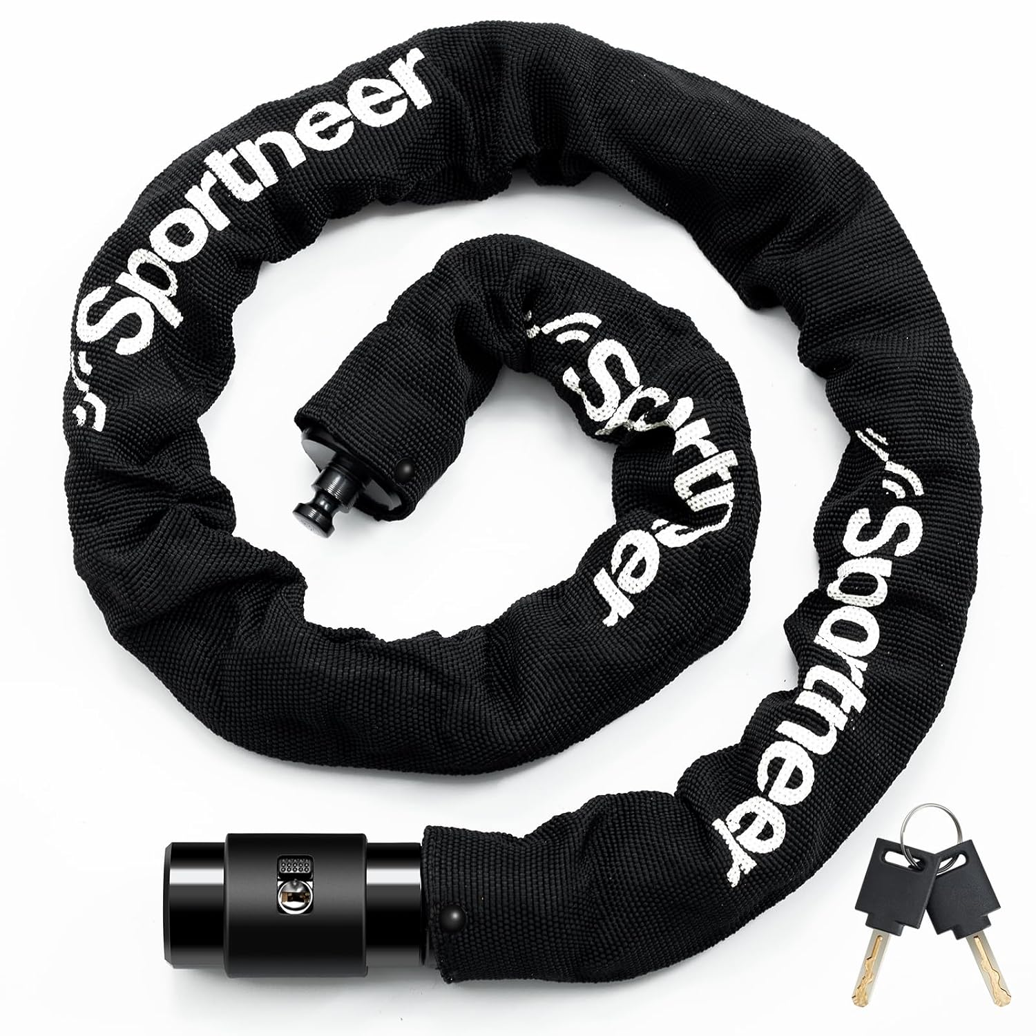 Crafted with a zinc alloy lock core and metal body, this high-security bike chain lock resists drilling and tampering. Includes two keys for backup convenience.